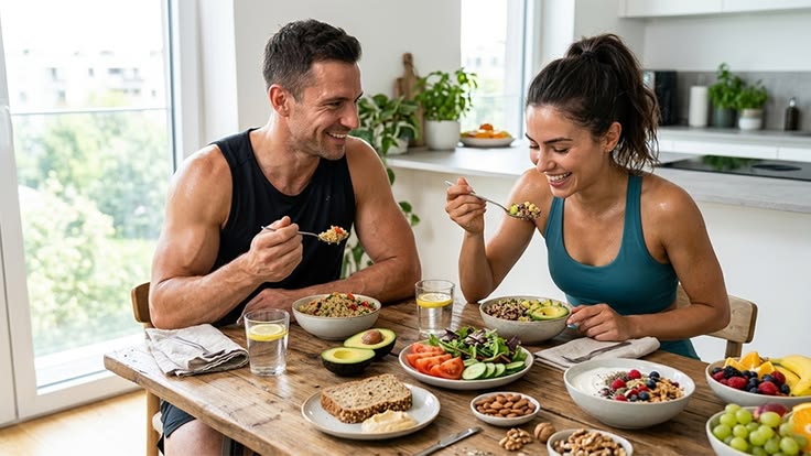 Fruits and vegetables are rich in vitamins and antioxidants, while whole grains provide fiber that supports digestion. Lean proteins such as eggs, chicken, fish, beans, and legumes help build and repair muscles.
